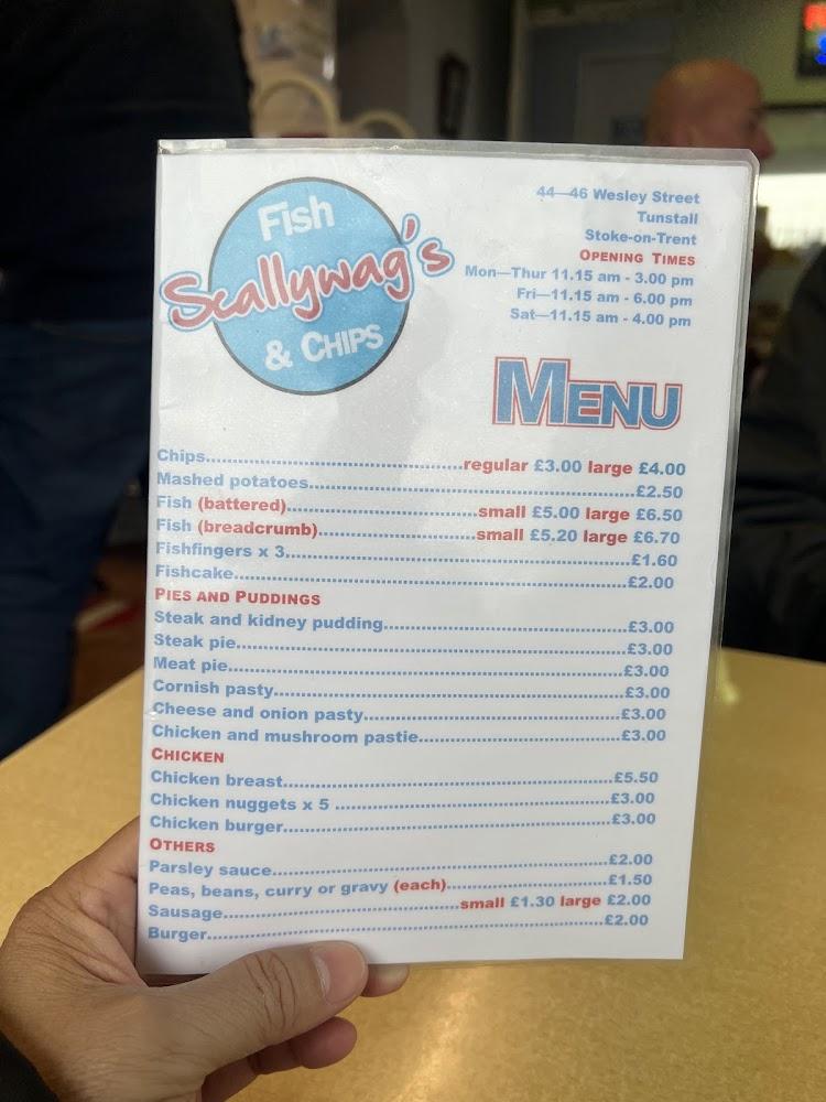Situated at 44-46 Wesley Street in Tunstall, Stoke-on-Trent, Scallywags has become a staple for both locals and visitors. The city embraces its rich history paired with a modern twist, and Scallywags mirrors that perfectly. This takeout joint not only serves amazing dishes but also embodies the warm spirit of the community. The accessibility of the restaurant makes it welcoming to everyone, including those in wheelchairs, ensuring a comfortable dining experience for all. With its casual and cozy atmosphere, Scallywags has positioned itself as the go-to destination among Tunstall's vibrant eateries. The area features free on-street parking and paid options nearby, making it convenient whether you're just passing through or staying a while. Open every day, it ensures that no matter when hunger strikes, a delightful meal is just around the corner.